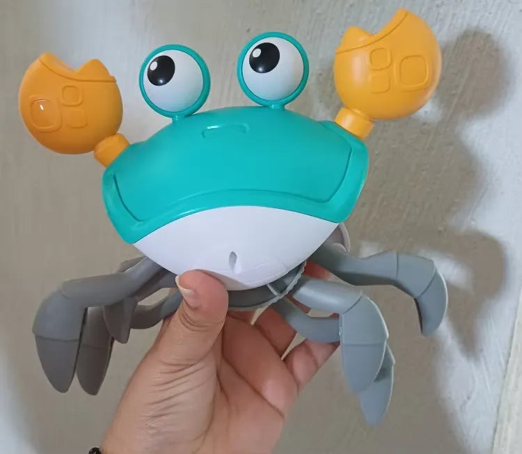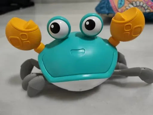 "OMG this crab toy is so lit🔥 My little bro can't get enough of it. It's funny watching it avoid obstacles and the music is a major bonus! Tbh, he won't play without it now. It's become his new BFF lol"